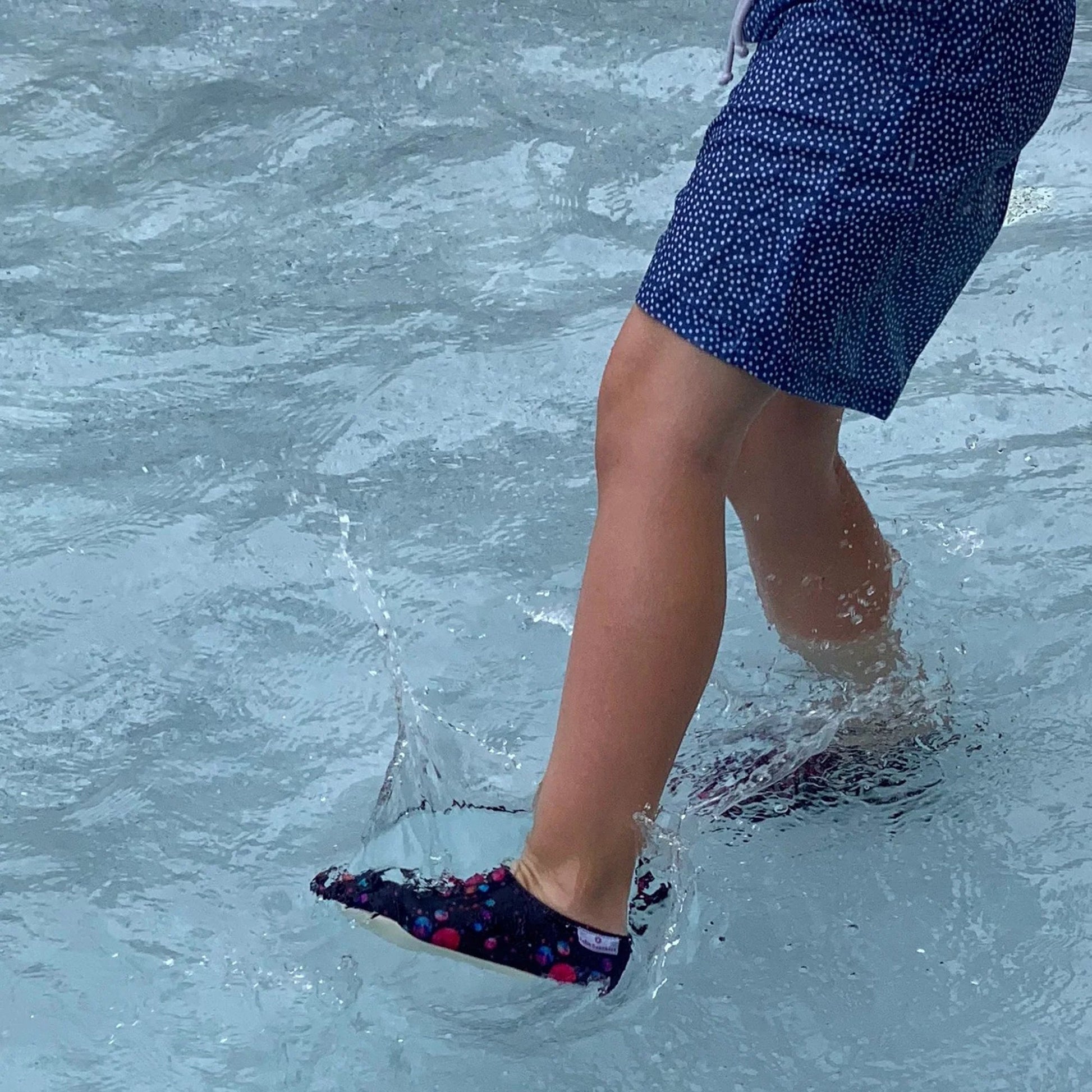 Lightweight and flexible water shoes for kids, toddlers, and infants, designed for little adventurers. These easy-fit swim and beach shoes feature a non-slip sole to protect little feet from rocky beaches, hot sand, and slippery pool surfaces. Perfect for the pool, beach, boating (boat shoes), playground fun, and indoor or outdoor activities, these versatile aqua shoes offer barefoot comfort with a breathable design that moves naturally with every step.