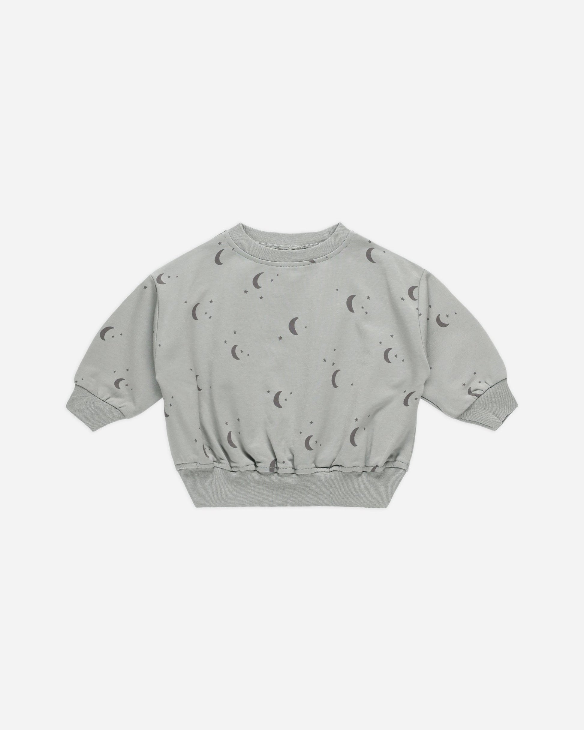 Relaxed fit sweatshirt made of the coziest fleece fabric. This sweatshirt has gathered knit cuffs and bottom opening.