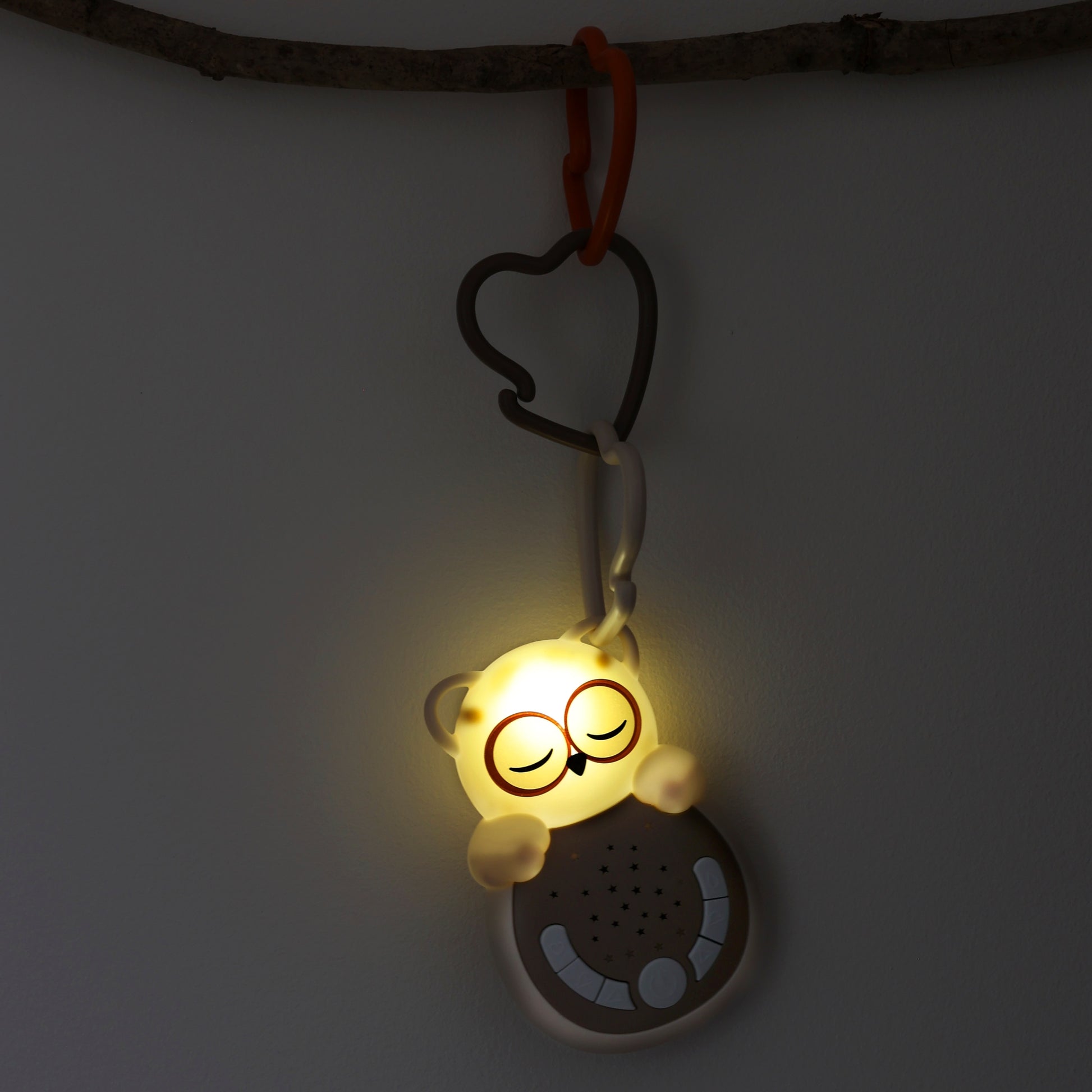 This soft little owl makes soothing sounds and a gentle nightlight easy to take along. With calming melodies, nature-inspired sounds, and a warm glow, it helps your child relax and fall asleep peacefully—whether at home or out and about.