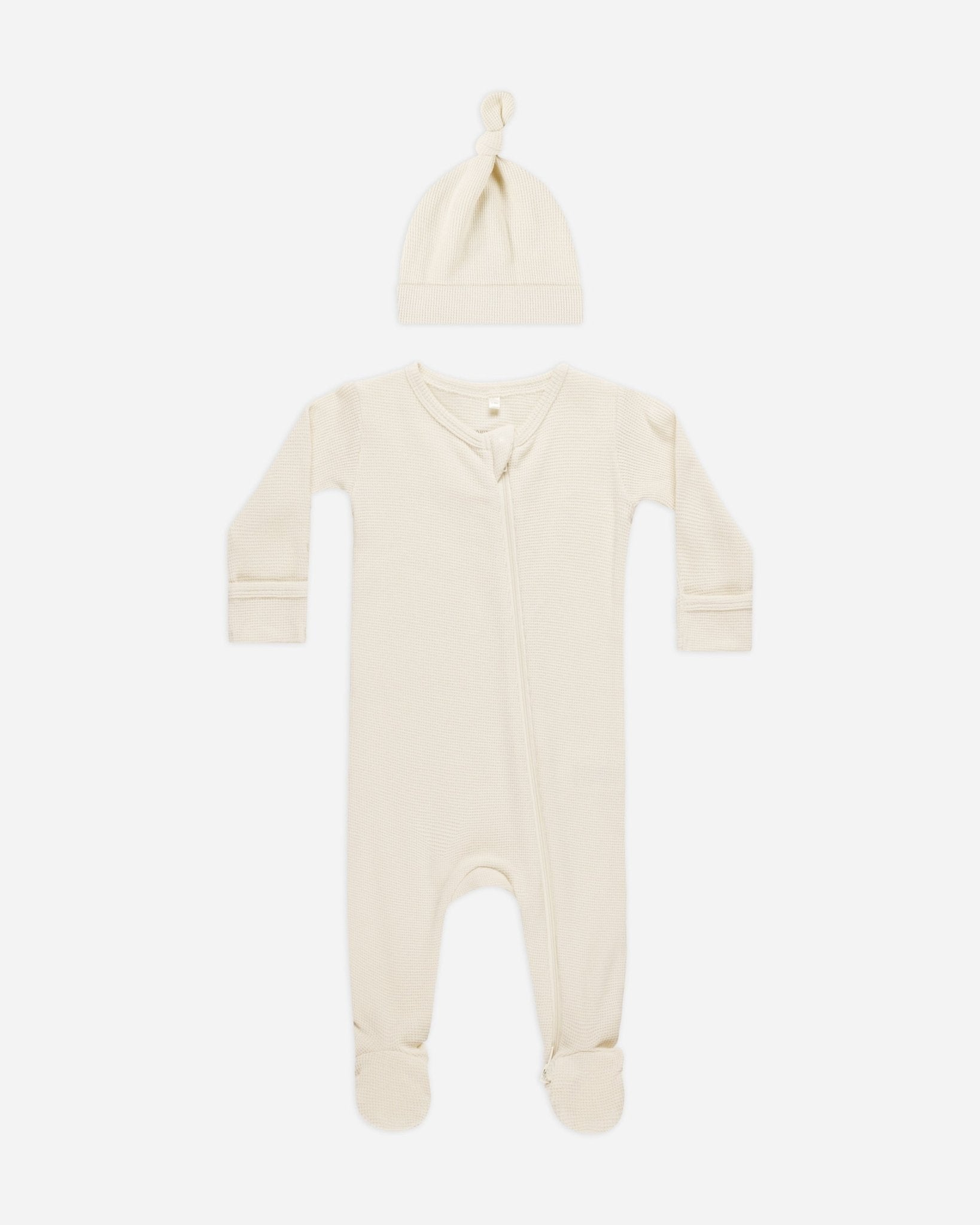 This zip long sleeve sleeper is made out of our soft organic fabric. Now pairing with knotted hat will keep your little one endlessly cozy.